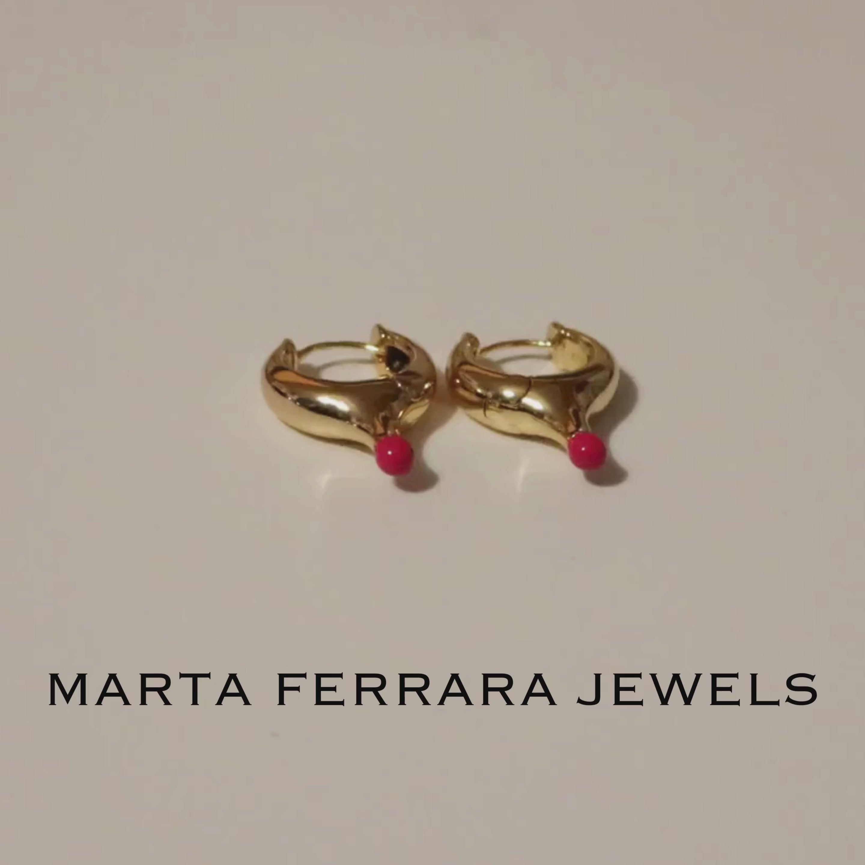 Gli orecchini firmati Marta Ferrara Jewels, realizzati in argento 925 placcato oro giallo 18 carati, uniscono linee essenziali a un dettaglio distintivo: una sfera smaltata a mano che aggiunge un accento cromatico deciso, ma armonioso.